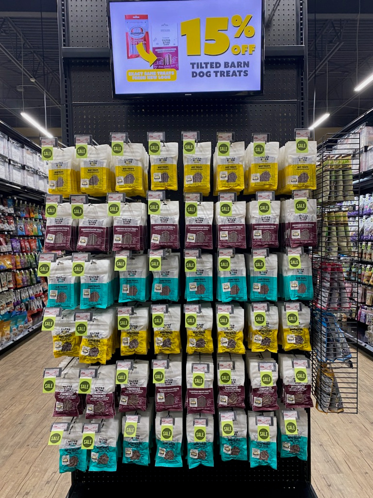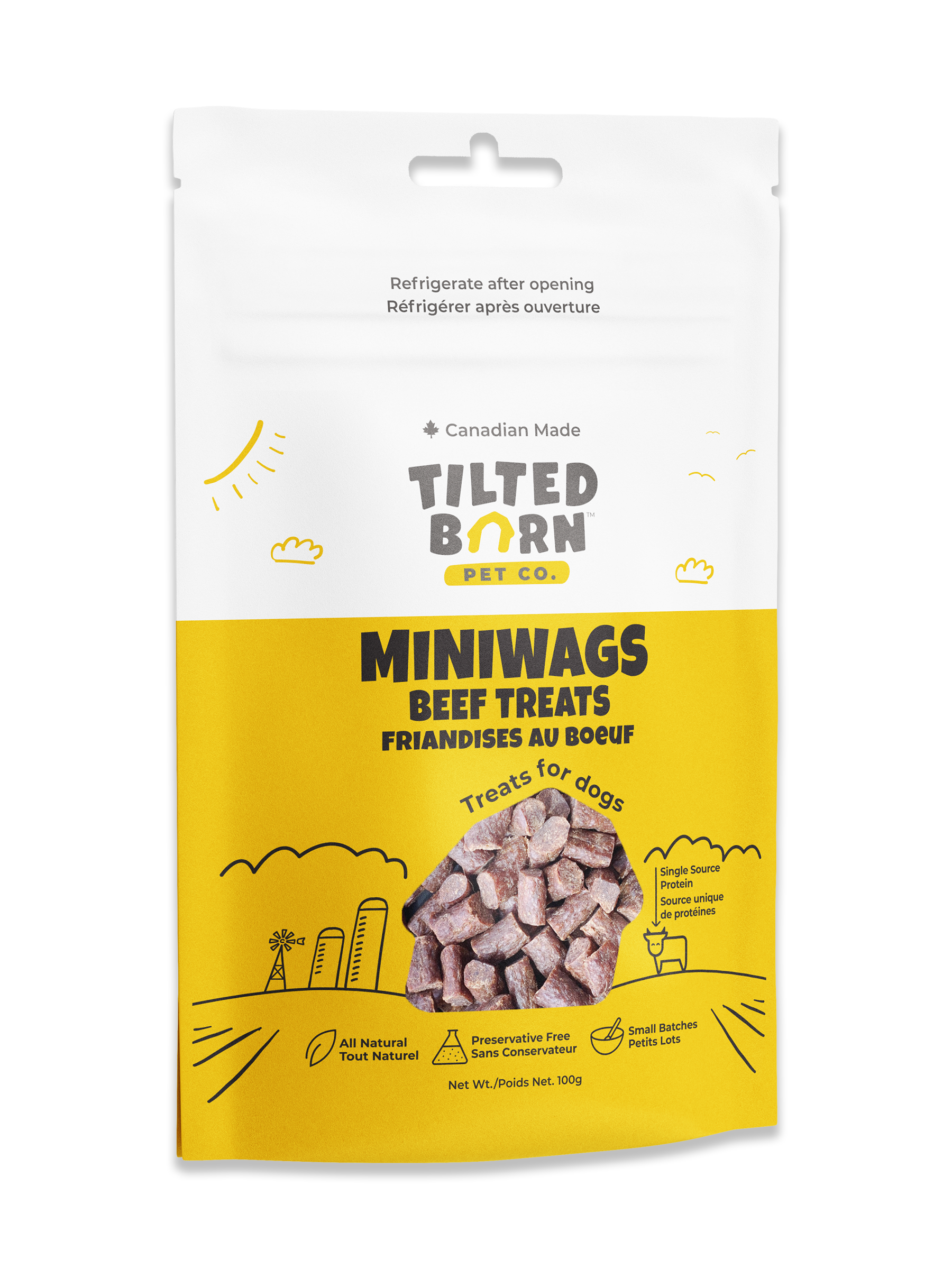 Les friandises pour animaux de compagnie Tilted Barn sont des friandises saines et molles pour chiens et chats. Nos friandises sont exemptes d'agents de conservation et ne contiennent aucun agent de remplissage ni aucun sous-produit. Nos friandises protéinées à source unique sont fabriquées à partir d'ingrédients entiers entièrement naturels de haute qualité provenant du marché de l'alimentation humaine provenant des Prairies canadiennes, et sont 100 % fabriquées au Canada.