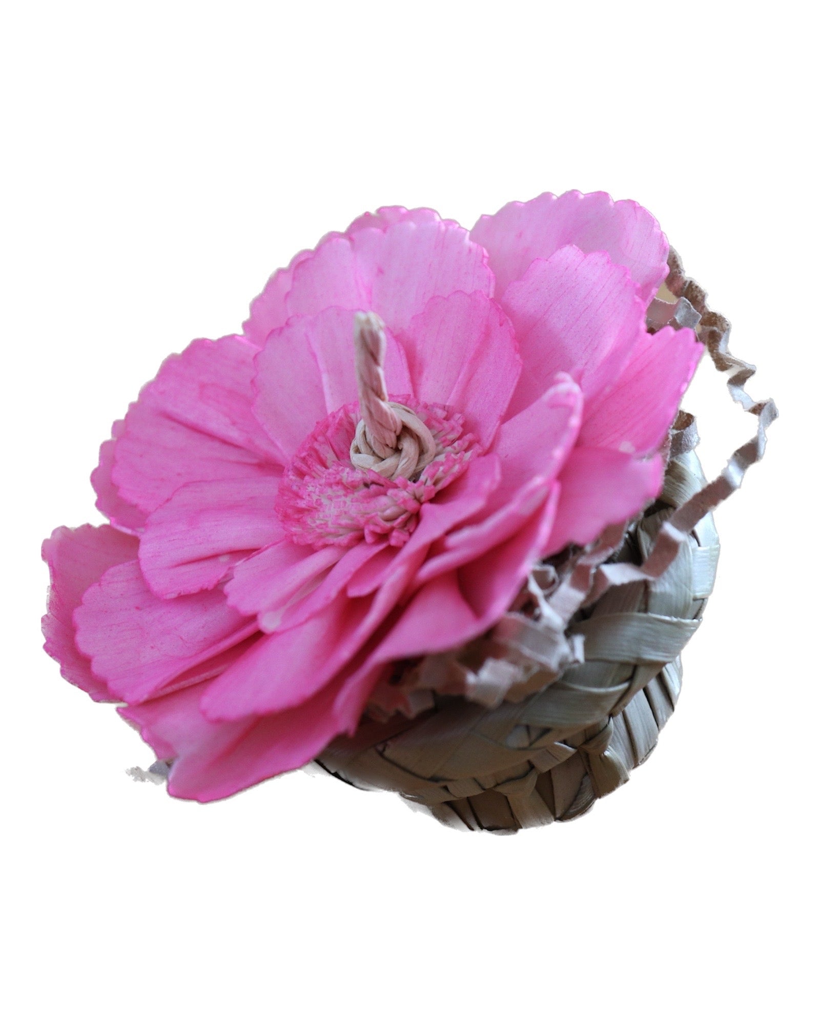 Jouet de pattes ou de foraging fabriqué avec ne fleur de sola et un pot en feuille de palmier